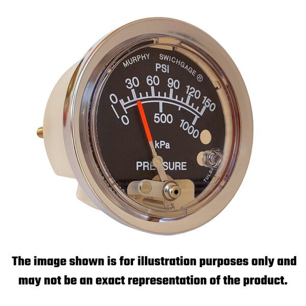 The Murphy 0-150 PSI Mechanical Pressure Swichgage 2.5" 25P-150 is a diaphragm-actuated, pressure-indicating gage with a built-in electrical switch. This swichgage is used for tripping alarms and/or shutdown devices. The gage mechanism is enclosed in a steel case coated to resist corrosion. A polycarbonate, break-resistant lens and a polished, stainless steel bezel help protect this rugged, built-to-last instrument. Accuracy and protection from moderate overpressure is assured by a unique, unitized diaphragm chamber. A built-in pulsation dampener helps eliminate pointer flutter and is removable for cleaning.
