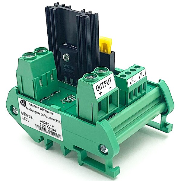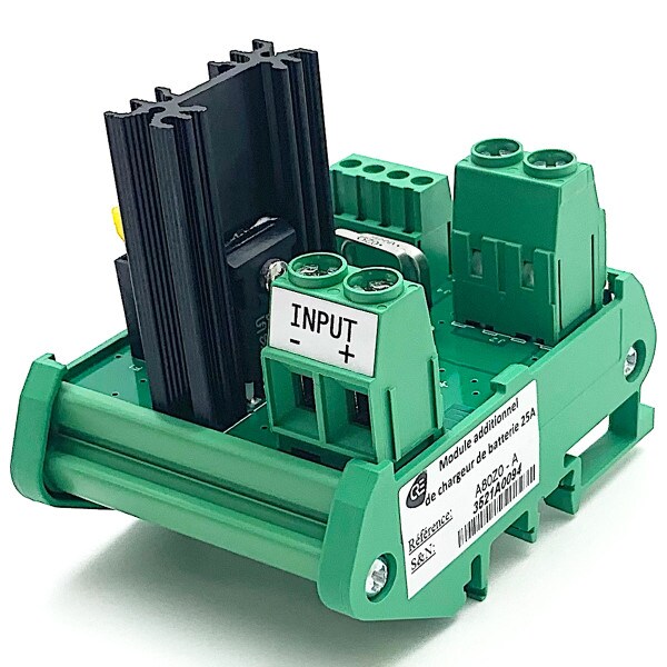 Combined with a CRE TECHNOLOGY charger, this module offers advanced additional functions. It is mounted on DIN rail and is mounted between the charger and the battery.