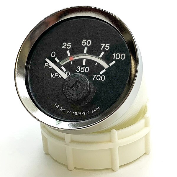 The EGS21P-100-24 Swichgage® also has an adjustable set point PowerHall® Effect switch output for operating alarms or equipment shutdown. The trip point is adjustable over 90% of the scale and has a set point indicator visible from the gage face. This gage features a spin-on gage clamp that will accommodate panel mounting up to 3/4" thick. A plug-in wire connector is provided for positive and easy connection. Now you can have both the ease of electric gage installation, and the reliable switching of Murphy's famous Swichgage® instrument.