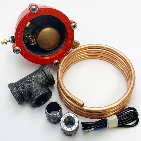 The unit ships with the following hardware (shipped loose): Copper tubing: 1/4" diameter x 48" (6 mm x 1.2 m) Reducer bushing: 1/2" NPT x 1/4" NPT Close nipple: 1/2" NPT Tee: 1/2" NPT, black pipe Wire: 16 AWG x 24" (610 mm)