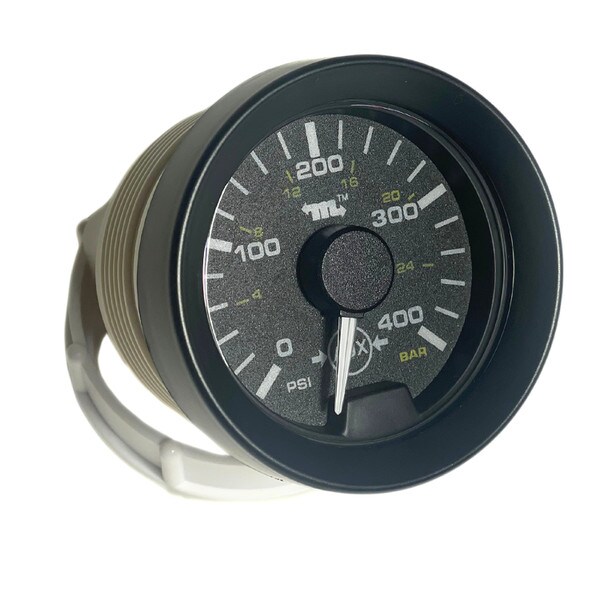 The Murphy 28 Bar/400 PSI PowerView Analog Auxiliary Pressure Gage 2" with Black Bezel PVA20-P-400-AB is designed to display easy-to-read information transmitted by the PowerView. The PVA gages communicate with the PowerView via a single RS485 twisted pair MODBUS RTU serial link. The gage can be daisy-chained using quick-connect harnesses with watertight connectors. The major feature of the PVA gages is their balance between design and functionality.