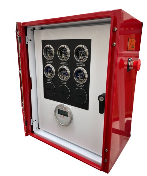 S800 Standard Engine Instrument Panel Single Bank housed in 20x16x10 inches NEMA 4 enclosure, painted red.