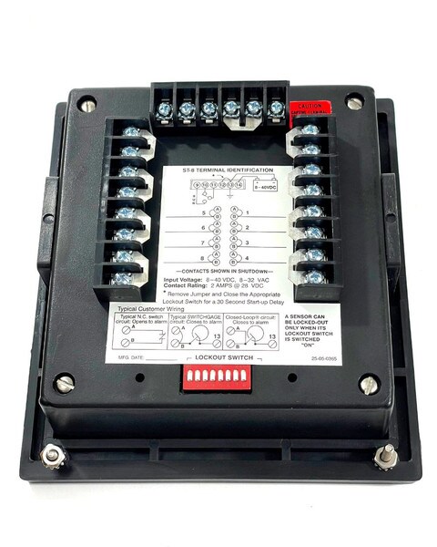 ST8F (flange mount) provides 8-point first out cause of shutdown TATTLETALE®. A flashing LED indicates the cause of shutdown identified by the nameplate.
