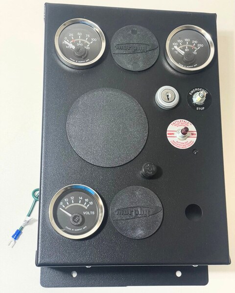 The WE0168 Swichgage® Shutdown Panel Kit is a 12-volt universal-fit instrument panel for industrial engines. The panel includes Swichgage® protection for low engine oil pressure and high coolant/oil temperature.